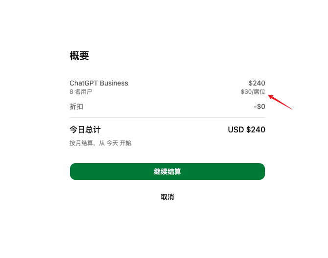 例如,选择8席位,月付费用为8 * 30美元 = 240美元。但官方提供企业优惠,可减免部分费用。
