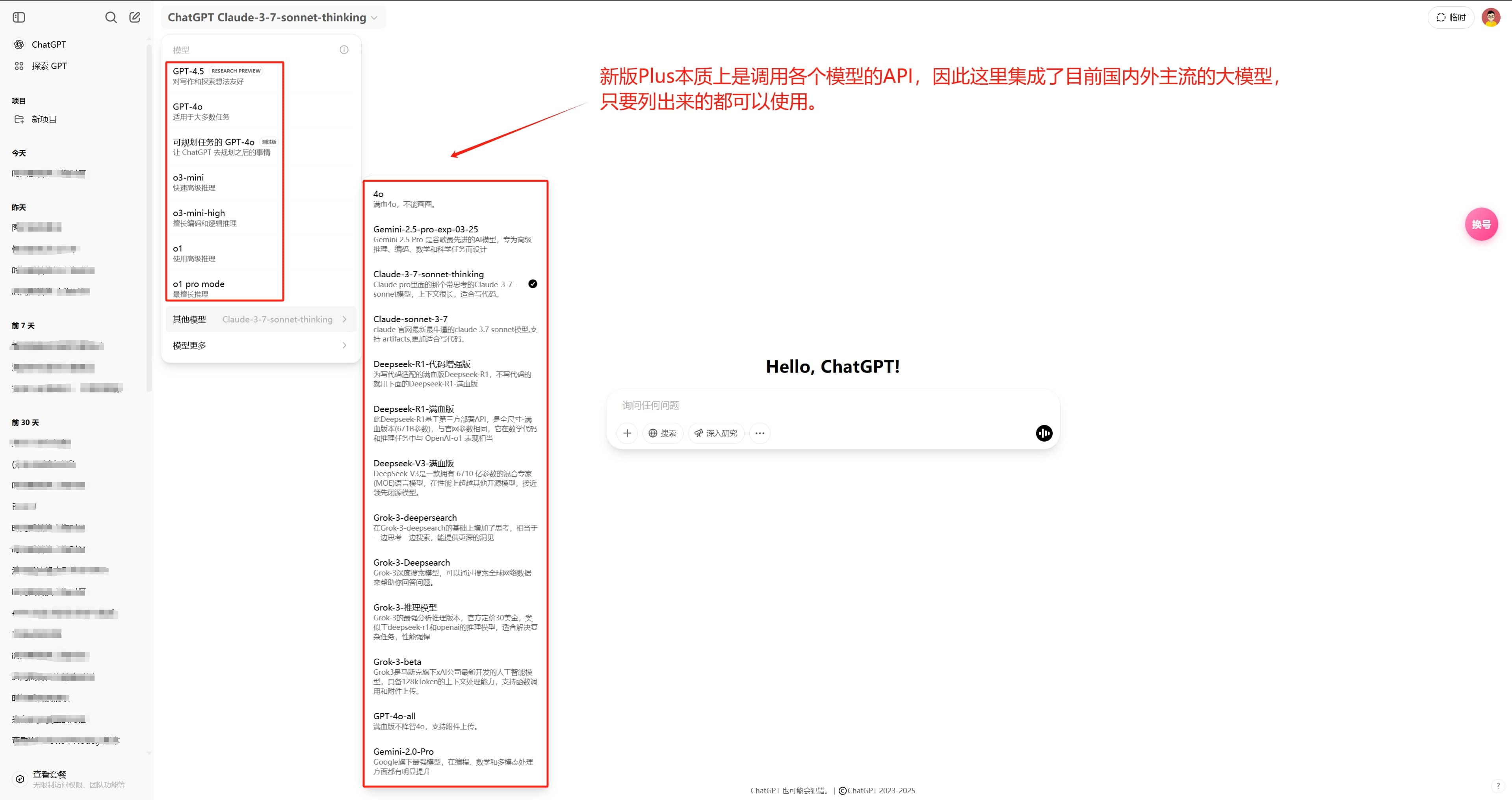 - ChatGPT 系列:GPT-4.5、GPT-4o-all、o3-mini-high、o1 Pro
